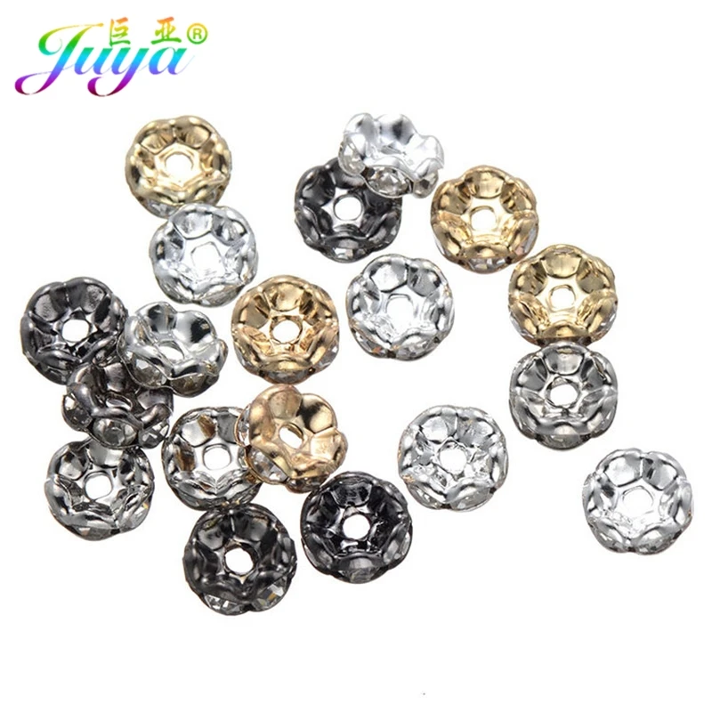Juya 100 ピース/ロット金属スペーサービーズクリアラインストーンフラワースライダー 8 ミリメートルセパレータ女性のための針仕事ビーズジュエリーメイキング