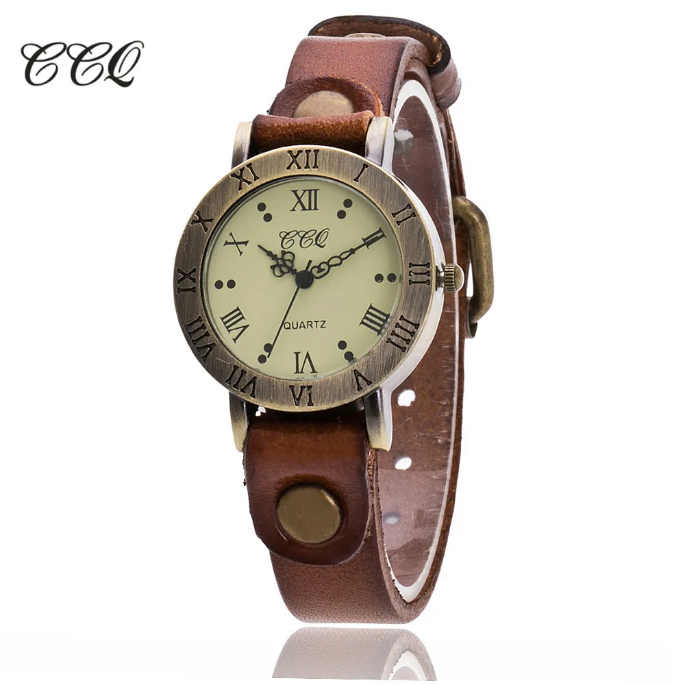 Reloj de pulsera de cuero de vaca de marca CCQ reloj de pulsera informal de cuarzo de lujo para mujer